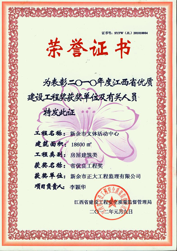 新余市正大工程監(jiān)理有限公司依托新余市建筑設(shè)計院,于1995年11月成立,是新余市開展監(jiān)理工作最早的監(jiān)理單位,本公司具有建設(shè)部核發(fā)的房屋建筑工程甲級監(jiān)理資質(zhì)、市政公用工程乙級監(jiān)理資質(zhì)、國家人防辦核發(fā)的人防工程監(jiān)理乙級資質(zhì)。我公司始終堅持“客戶至上、質(zhì)量第一、信守合同”的經(jīng)營理念;追求“為社會創(chuàng)造價值、為業(yè)主創(chuàng)造效益、為自身謀求發(fā)展”的經(jīng)營宗旨;遵循“守法、誠信、公正、科學(xué)、優(yōu)質(zhì)、高效”的工作原則,以雄厚的技術(shù)力量、完善的管理制度、豐富的監(jiān)理經(jīng)驗、良好的企業(yè)信譽迅速成為我市監(jiān)理行業(yè)的一支新銳力量! 查看更多>>